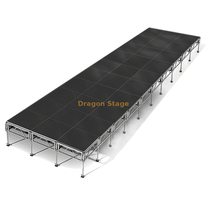 لا توفر مرحلة الألومنيوم الأداء الوظيفي فحسب، بل توفر أيضًا المظهر الجمالي. يضيف تصميمه الأنيق واللمسة النهائية المصقولة لمسة من الأناقة إلى أي مناسبة. بالإضافة إلى ذلك، يمكن تخصيص المسرح بخيارات سطحية متنوعة، مثل السجاد أو الطلاءات المانعة للانزلاق، لتتناسب مع موضوع وأسلوب الحدث الخاص بك. تتيح لك هذه المرونة إنشاء مسرح يكمل تمامًا الأجواء التي تريدها.