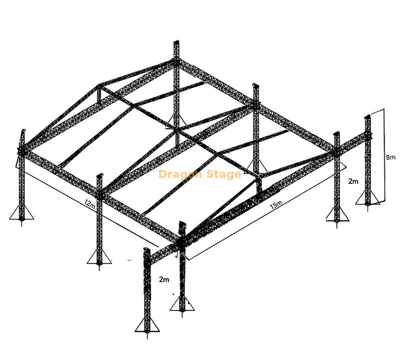 تم تصميم من Dragon Stage نظام تروس مرحلة الأحداث الخارجية القابل للتعديل من الألومنيوم للحفلات الموسيقية والمهرجانات والأحداث المتلفزة الأكثر تطلبًا. تتميز هذه الحزمة الشاملة بهيكل سقف تروس قوي بأبعاد 15 م × 12 م × 8 م مدعوم بستة أعمدة رئيسية وتتضمن منصة مسرح واسعة وقابلة للتعديل. يوفر الذي تمت ترقيته نظام الدعم المكون من ستة أبراج توزيعًا استثنائيًا للحمل واستقرارًا على مدى 15 مترًا، مما يجعله الخيار الأول للإنتاج الخارجي الرئيسي.
