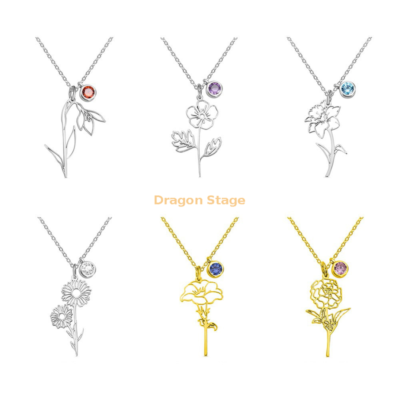 شخصية قلادة - هذا قلادة يجمع بين جوهرة وزهرة ولادة، أنت يمكن اختيار زهرة الولادة المفضلة لديك والمحول، إنها مناسبة ل أي شخص يحب الزهور.