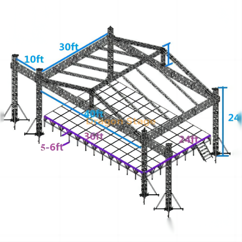 تروس سقف الحفل من الألومنيوم الخارجي مع منصة المسرح 12x9x9m ، يبلغ عرض أجنحة صفيف الخط 3 أمتار