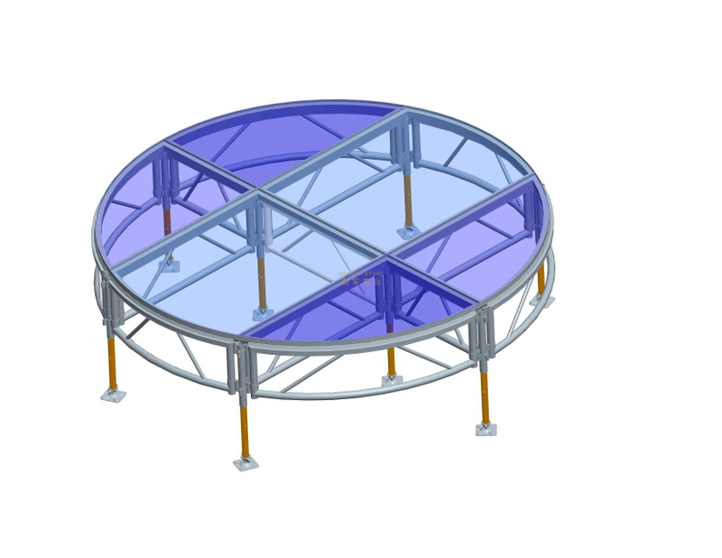 يمكن استخدام مرحلة دائرية حمراء خشبية مع الدرج لحفلات الزفاف أو الأنشطة.