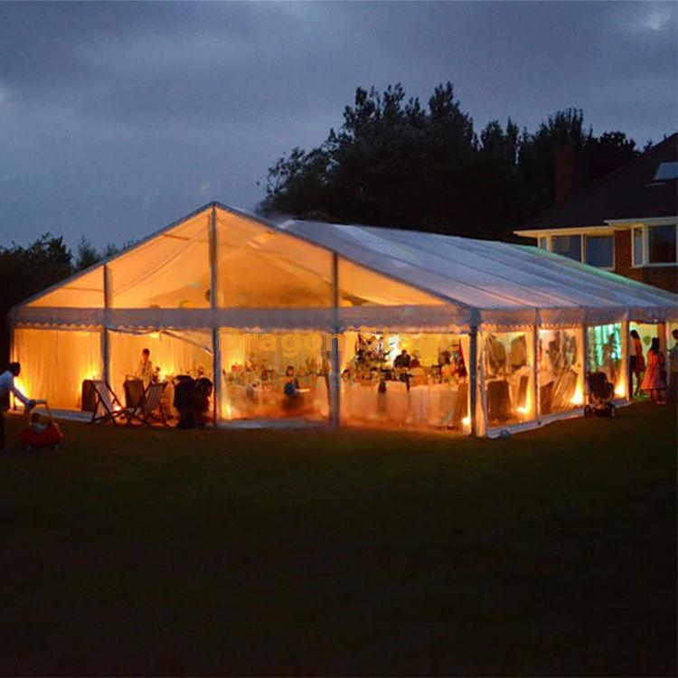 تتألق الخيمة التي يبلغ حجمها 50 × 150 قدمًا أيضًا كمكان للاحتفالات واسعة النطاق. تجد حفلات الزفاف، بعظمتها المتأصلة وحاجتها إلى مساحة واسعة، تطابقًا مثاليًا في هذا الهيكل الكبير. يمكن تزيين الخيمة بتنسيقات الأزهار والأضواء المتلألئة وإعدادات الطاولة الأنيقة، لتتحول إلى مساحة سحرية لتبادل النذور واستضافة حفلات الاستقبال والرقص طوال الليل. يسمح القماش المحايد بتنفيذ أي موضوع أو تصميم، مما يضمن تجربة زفاف شخصية حقًا لا تُنسى.