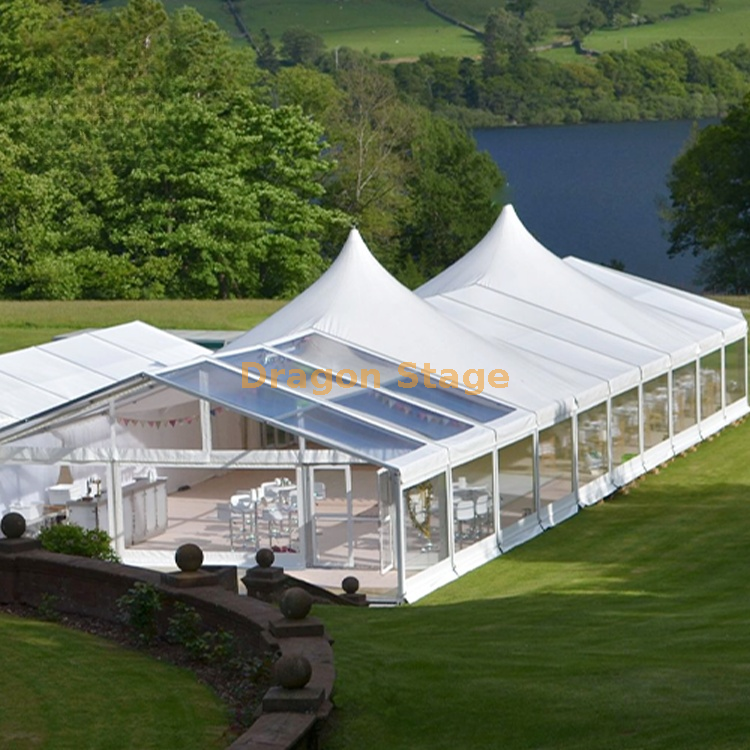 تعد خيمة حفلات الزفاف ذات السقف الشفاف مقاس 20 × 60 مترًا خيارًا مثاليًا للعديد من الأحداث. يمكنه بسهولة استيعاب حفلات الزفاف الكبيرة وتجمعات الشركات والمهرجانات وإطلاق المنتجات والمزيد. إن تعدد استخداماته وقدرته على التكيف يجعله حلاً مثاليًا لتحويل أي مساحة خارجية إلى مكان فاخر وعملي.