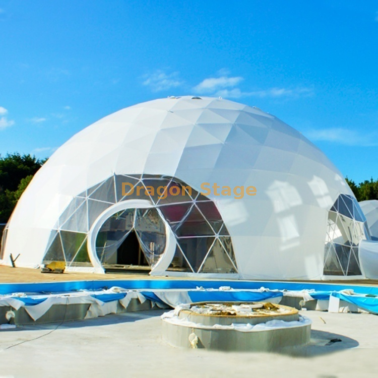 بالإضافة إلى جاذبيتها الجمالية، تم تصميم خيمة القبة ذات الأبعاد 12 م × 15 م مع الأخذ في الاعتبار التطبيق العملي والوظيفي. يضمن الإطار القوي المصنوع من الألومنيوم الثبات والمتانة، كما أنه قادر على تحمل الظروف الجوية المختلفة. يتم تجميع الخيمة وتفكيكها بسهولة، مما يجعلها خيارًا مناسبًا للمناسبات المؤقتة والطويلة الأمد. علاوة على ذلك، يسمح التصميم المعياري للخيمة بالتخصيص والتوسيع، واستيعاب قدرات الضيوف المختلفة واحتياجات الأحداث المحددة.