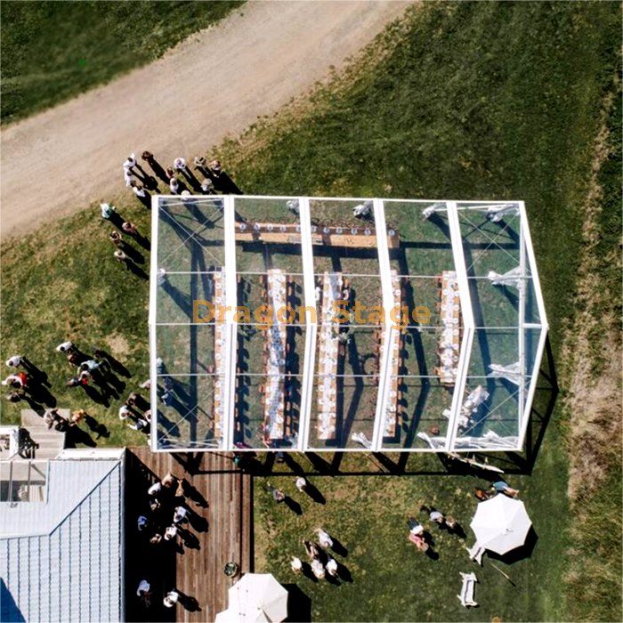 علاوة على ذلك، فإن تنوع هذا الهيكل يمتد إلى ما هو أبعد من حفلات الزفاف.ويمكن تكييفه مع مجموعة من الأحداث الاحتفالية، بما في ذلك تجمعات الشركات وحفلات أعياد الميلاد وإطلاق المنتجات.تسمح اللوحة القماشية الشفافة بتصميمات الإضاءة الإبداعية، وتحويل المساحة إلى مشهد ساحر في الليل، مما يزيد من التأكيد على تفرد الحدث.