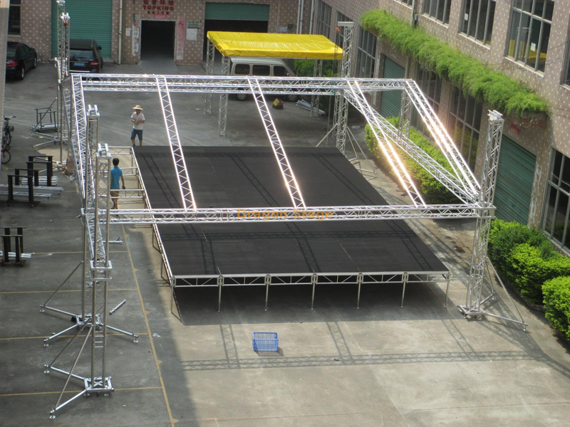 يضمن هيكل الألومنيوم للمسرح المتانة والمرونة.يسمح الألومنيوم، المشهور بخفة وزنه وخصائصه القوية، بإنشاء مسرح سليم من الناحية الهيكلية قادر على دعم أحمال الوزن الكبيرة.يتم تعزيز هذه القوة الكامنة بشكل أكبر من خلال نظام التثبيت المصمم بشكل استراتيجي، مما يضمن الاستقرار والمقاومة ضد القوى الخارجية، حتى في الظروف الجوية الصعبة.