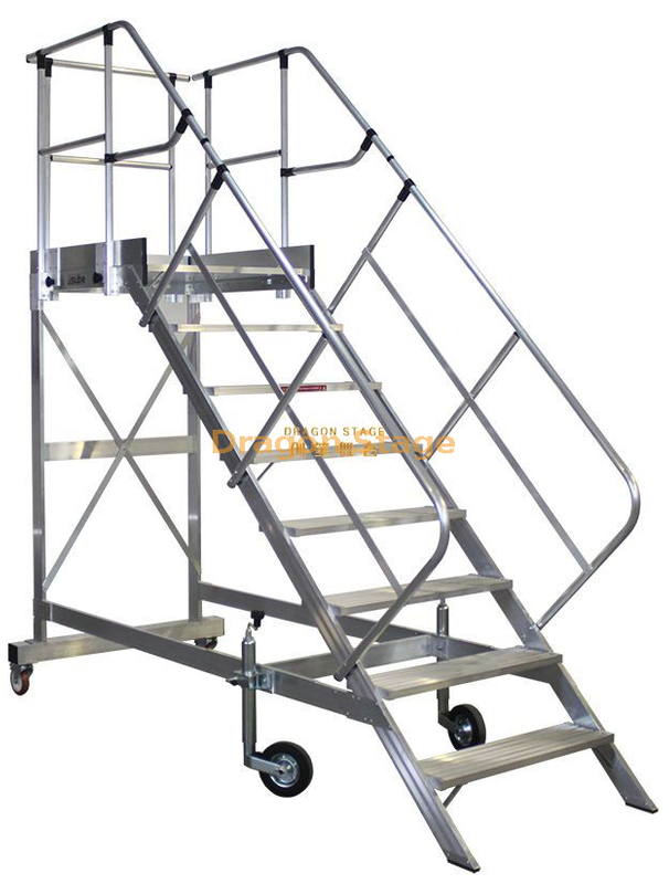 | اسم المنتج | سلامة مستودع الألومنيوم المحمولة المتداول سلم منصة العمل المتنقلة مع الدرابزين |