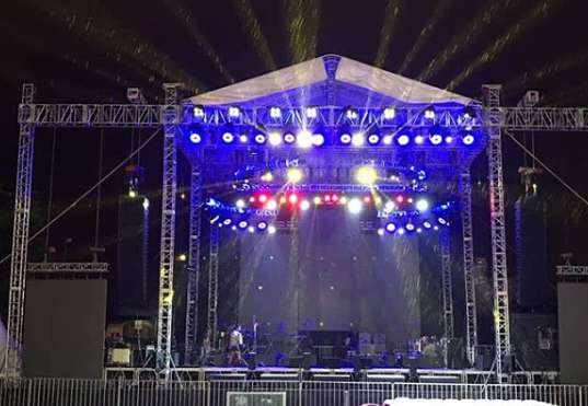هذه الحفلات الموسيقية في الهواء الطلق في الهواء الطلق، يتم استخدام Truss Lighting Trouss مصنوعة من الألومنيوم. من السهل تجميع وتشمل كيس من البراغي والمكسرات والمسامير. طولها 24 قدما ولديها 15 قدما.