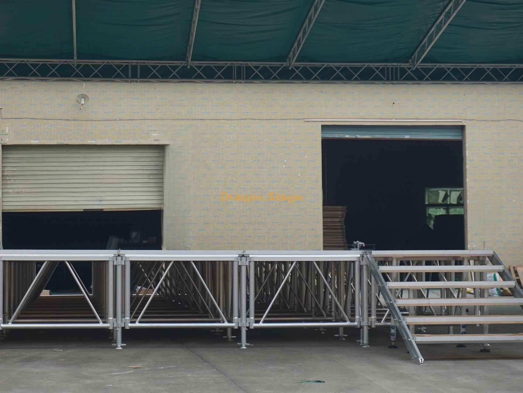 إحدى الميزات البارزة لهذه المرحلة المصنوعة من الألومنيوم هي سهولة التجميع. يسمح التصميم المعياري بالإعداد والتفكيك السريع، مما يوفر لك الوقت والجهد الثمين. تم تصميم كل وحدة مرحلة ليتم تجميعها باستخدام الحد الأدنى من الأدوات، وتم تصميم المكونات لتتشابك بسلاسة. وهذا يعني أنه يمكنك إعداد المسرح الخاص بك وتشغيله في وقت قصير، مما يسمح لك بالتركيز على جوانب أخرى من التخطيط للحدث الخاص بك.