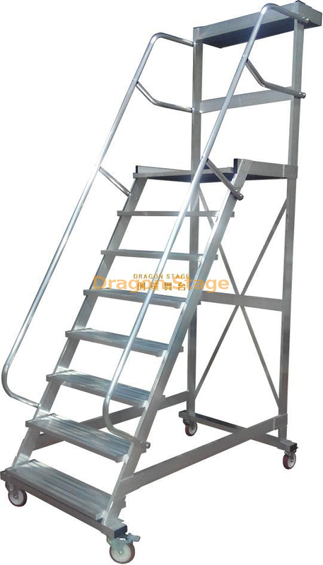 | اسم المنتج | مستودع الألومنيوم السلامة المحمولة المتداول سلم منصة العمل المتنقلة مع الدرابزين |