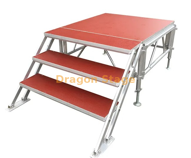قدرة تحميل عالية: مع سعة تحميل تصل إلى 750 كجم لكل متر مربع، يمكن لهذه المرحلة التعامل مع المعدات الصوتية الثقيلة وأجهزة الإضاءة وغيرها من الضروريات دون المساس بالاستقرار.