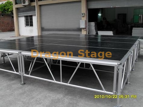 يتطلب جانب قابلية النقل تصميمًا مدروسًا بعناية للتفكيك والتخزين. يجب أن تتضمن المرحلة بشكل مثالي تصميمًا معياريًا، مما يسمح بسهولة النقل والتخزين. يجب أن تكون المكونات خفيفة الوزن ولكنها قوية، ومن الضروري وجود نظام للتثبيت والقفل الآمن أثناء النقل. ومن الناحية المثالية، ينبغي تصميم المرحلة لتقليل الحاجة إلى أدوات أو معدات متخصصة أثناء التجميع والتفكيك، مما يجعلها سهلة الاستخدام حتى بالنسبة للموظفين الأقل خبرة. تعتبر تعليمات التجميع التفصيلية والمكونات المصنفة أمرًا ضروريًا للإعداد الفعال والآمن.