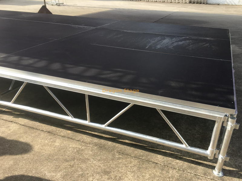 تم تصميم منصة سطح المسرح المحمولة للحفلات الموسيقية بمواد عالية الجودة وحرفية دقيقة، مع إعطاء الأولوية للسلامة والأمن. يضمن البناء القوي الاستقرار وقدرة التحمل، ويستوعب مجموعة واسعة من المعدات والأفراد. يوفر سطح المنصة غير القابل للانزلاق قاعدة آمنة لفناني الأداء، مما يقلل من مخاطر الحوادث ويعزز بيئة الأداء الواثقة.