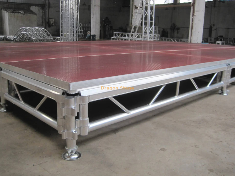 قابلية النقل هي السمة المميزة لهذا النوع من المرحلة. يجب أن يسهل التصميم عملية التفكيك والنقل وإعادة التجميع بسهولة. يتم استخدام المكونات المعيارية، التي يتم تأمينها غالبًا بموصلات بسيطة ولكنها قوية، بشكل شائع لتبسيط عملية الإعداد والانهيار. يعد الوزن الإجمالي للمنصة عاملاً مهمًا يؤثر على قابليتها للنقل. تساهم المواد خفيفة الوزن والتصميم الفعال في تسهيل التعامل والنقل. يمكن للعجلات أو العجلات أن تزيد من تعزيز القدرة على الحركة، مما يسمح بالحركة دون عناء عبر الأسطح المختلفة.