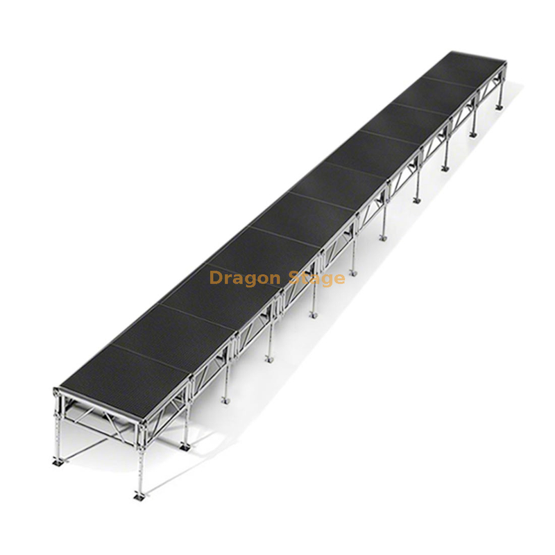تنوع شديد في الارتفاع: توفر الأرجل التلسكوبية شديدة التحمل نطاقًا رائعًا يتراوح من 0.4 متر إلى 2 متر (1.3 قدم إلى 6.5 قدم). يتيح ذلك للمسرح أن يعمل مثل كل شيء بدءًا من منصة منخفضة المستوى وحتى مرحلة خارجية عالية الارتفاع.