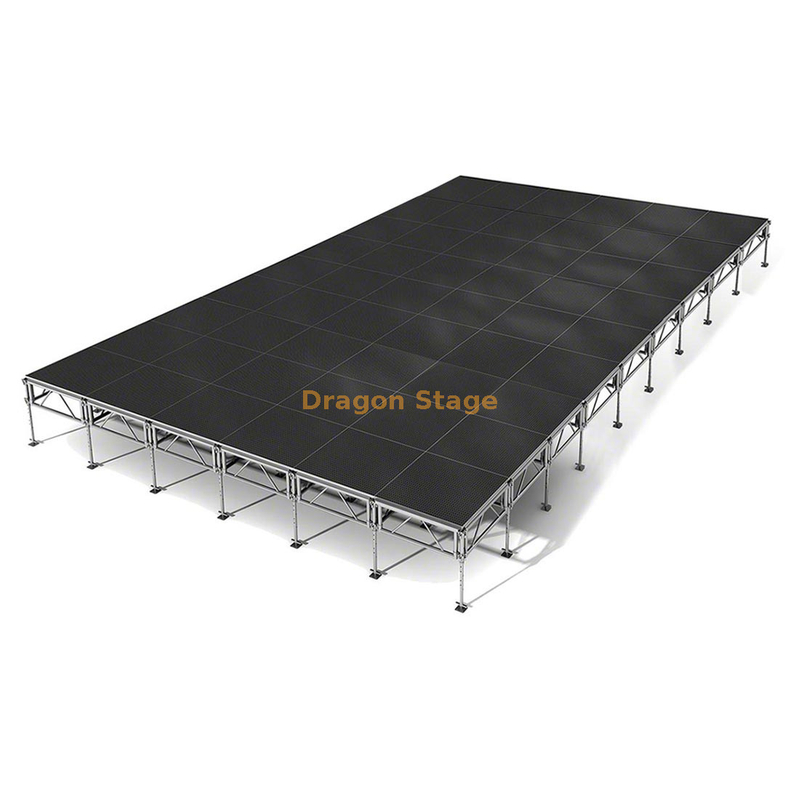 سعة التحميل للخدمة الشاقة: تم تصميم هذه المنصات الاحترافية لتحقيق الاستقرار، وعادةً ما تدعم الأحمال الديناميكية الكبيرة، التي تتراوح من 150 إلى أكثر من 200 رطل لكل قدم مربع، مما يجعلها آمنة للفرق الموسيقية وفرق الرقص والمعدات الثقيلة.
