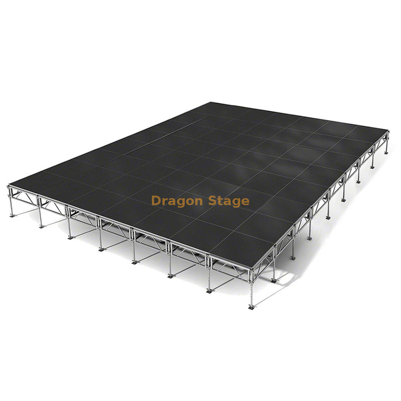 يبلغ الحجم الإجمالي لمنصة المسرح المحمولة هذه 9.76 مترًا في 8.54 مترًا، مما يوفر مساحة واسعة لفناني الأداء والمعدات الخاصة بك. تم تصميم المنصة بعناية لاستيعاب أنواع مختلفة من الأحداث، مما يضمن أن حفل الزفاف الخاص بك سيكون حدثًا كبيرًا. بفضل بنيتها القوية وموادها عالية الجودة، يمكنك الوثوق في أن هذه المرحلة ستوفر سطحًا آمنًا ومستقرًا لجميع أنشطتك.