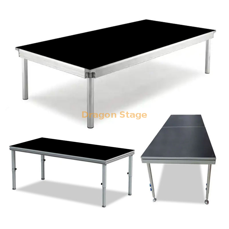 مصنوعة من الألومنيوم المتين، منصة المسرح هذه خفيفة الوزن وقوية، مما يجعلها مثالية للاستخدام الداخلي والخارجي.تضمن آلية القفل السريع منصة آمنة ومستقرة لفناني الأداء والمقدمين.