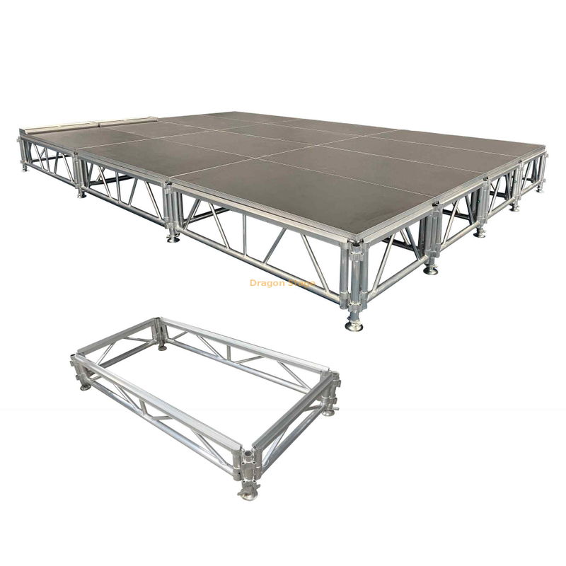 يقدم نظام منصة المسرح المعياري المحمول المصنوع من الألومنيوم، والذي يتميز بطول كبير يبلغ 14 مترًا وعرض 12 مترًا، نفسه كحل قابل للتكيف بدرجة كبيرة لمجموعة متنوعة من احتياجات الأحداث.يسمح التصميم المعياري لهذا النظام، إلى جانب هيكله المصنوع من الألومنيوم خفيف الوزن، بالتجميع والتفكيك بسرعة وكفاءة، مما يجعله مثاليًا للأحداث المؤقتة والمتكررة.