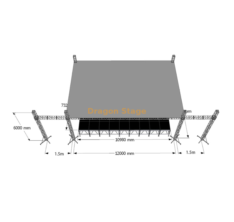 سعة الحمولة: سيتم تصميم نظام الجمالون بأكمله لتحمل الحد الأدنى من سعة الحمولة التي تبلغ 1500 كجم لكل متر مربع، وهو ما يتجاوز معايير الصناعة لتطبيقات مرحلة الحفلات الموسيقية.
