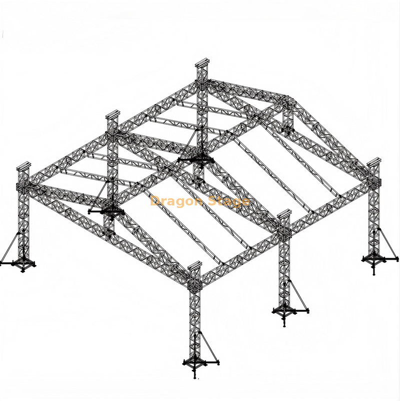 لضمان أرضية مناسبة سلسة، فإن هذه الجمالونات متوافقة تمامًا مع منصات المسرح المعيارية المصنوعة من الألومنيوم. يمكن تكوين هذه الأسطح لإنشاء حلبة رقص مستوية أو طاولة مرتفعة الرأس، وتتميز بأسطح مضادة للانزلاق تضمن السلامة حتى في الظروف الخارجية عالية الرطوبة (المصدر: https://www.dragontruss.com/Aluminum-Stage-Platform-pd463987768.html ).