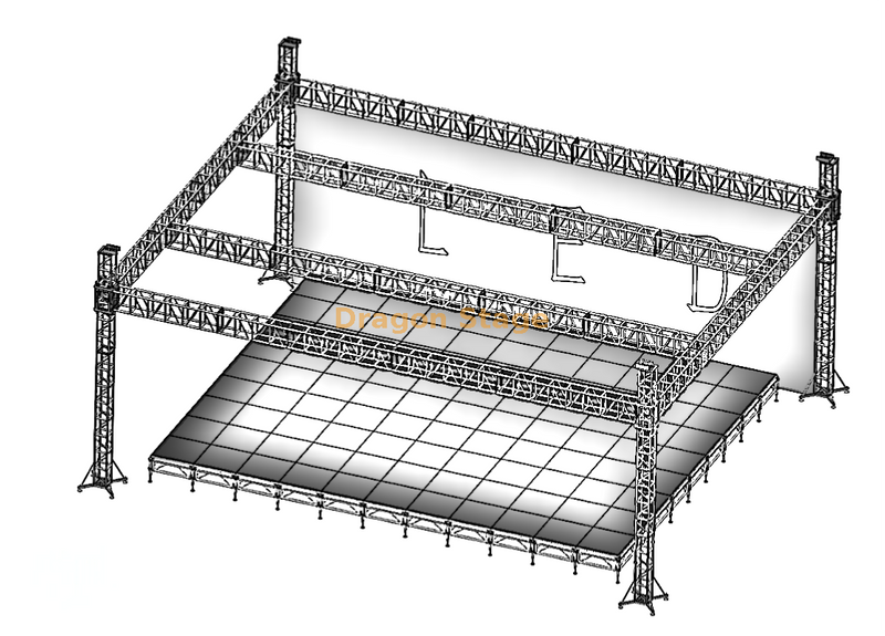 الهيكل: نظام دعم أرضي شامل وتروس صندوقية، مثالي لتعليق معدات الإنتاج الثقيلة مثل مصفوفات الإضاءة ومكبرات الصوت كبيرة الحجم ولوحات العرض LED.