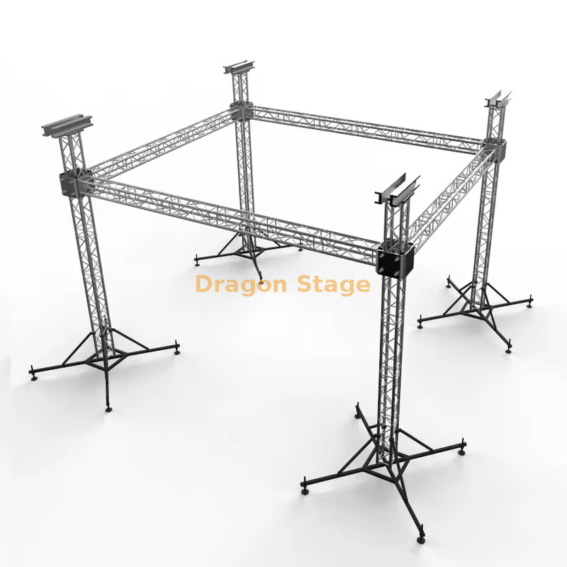 تشمل المزايا الرئيسية نمطية لسهولة الإعداد والتفكيك، ومقاومة التآكل للاستخدام الخارجي، وقدرة تحمل عالية مناسبة لتعليق معدات الإضاءة والصوت والفيديو. كحل قابل للتخصيص ، يمكن تكييفه أو دمجه مع مكونات المرحلة الأخرى مثل المنصات والأسقف. يوفر Dragon Stage دعمًا شاملاً، بما في ذلك التصميم الهندسي وشهادات TUV وضمان لمدة 3 سنوات ، مما يجعل نظام الجمالون هذا خيارًا موثوقًا وفعالاً لمنظمي الأحداث المحترفين وبناة المسرح.