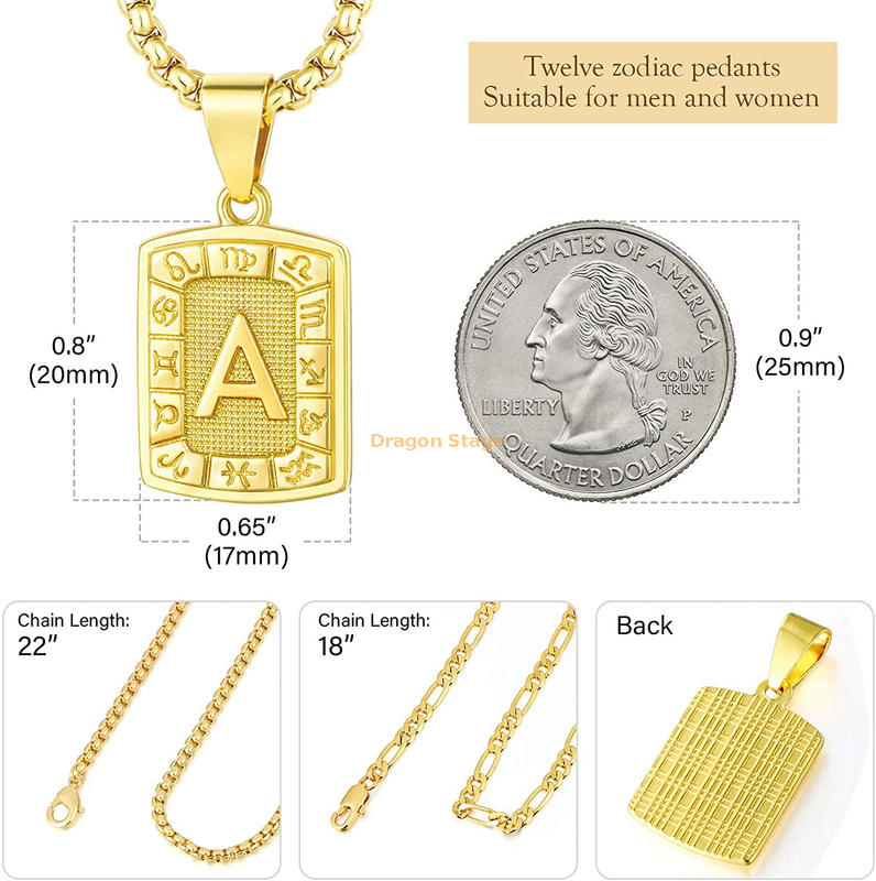 هدية عيد الأب قلادة مجوهرات مخصصة من الألف إلى الياء علامة زودياك علامة الفولاذ المقاوم للصدأ مطلية بالذهب الأولي رسالة قلادة الرجال قلادة