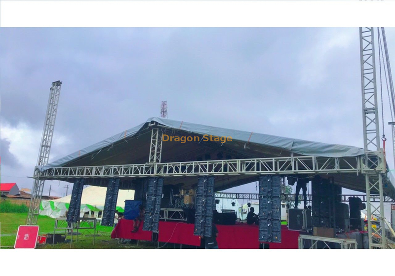 خيارات التسقيف: يعمل هيكل الجمالون المصنوع من الألومنيوم كنظام دعم لأنواع مختلفة من مواد التسقيف.يمكن أن يشمل ذلك الستائر المصنوعة من القماش ، وأغطية PVC أو الفينيل ، وألواح البولي كربونات ، أو حتى الهياكل المصنوعة حسب الطلب مثل شاشات LED أو منصات الإضاءة.يعتمد اختيار مواد التسقيف على المتطلبات المحددة للحدث أو التثبيت.