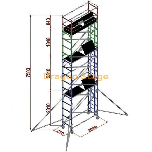 0.75x2x7.53M برج سقالة فردي من الألومنيوم مخصص - وصف المنتج