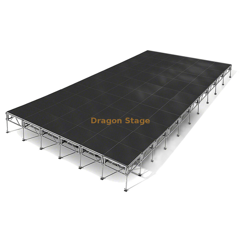 * **التخصيص:** بالإضافة إلى التكوين القياسي لدينا، نقدم خيارات مسرح قابلة للتخصيص بأحجام وارتفاعات مختلفة. اختر من بين **0.4-0.6 م و1.2-2 م** مراحل عالية لتناسب احتياجات الحدث الخاص بك تمامًا.