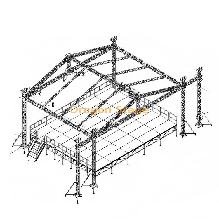 يحل DragonStage هذه المشكلات من خلال برج متخصص للخدمة الشاقة ونظام أجنحة . من خلال استخدام دعامات مسمارية مقاس 400 × 400 مم لكل من الإطار الرئيسي والأجنحة، يحقق النظام لحظة قصور ذاتي أعلى، مما يقاوم عزم دوران مجموعات السماعات الثقيلة. يضمن تصميم السقف المثلث المقوس تساقط مياه الأمطار بشكل طبيعي بعيدًا عن مركز المسرح، مما يحمي الإضاءة ومخزونات الصوت التي تبلغ قيمتها مليون دولار. يسمح تضمين ست رافعات يدوية بوزن 2 طن (أربعة للسقف الرئيسي واثنتان للأجنحة) برفع 'الدعم الأرضي' المتزامن، مما يضمن سلامة الطاقم من خلال تقليل العمل المنجز على المرتفعات (المصدر: https://www.dragontruss.com/Aluminum-Truss-pl3962133.html ).