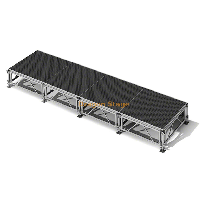 ارتفاع قابل للتعديل : يمكن تعديل ارتفاع المسرح ليناسب متطلبات الأحداث المختلفة، مع خيارات تتراوح من 0.4-0.6 م، 0.6-1.0 م، إلى 1.0-1.5 م، مما يوفر منصة متعددة الاستخدامات لمجموعة متنوعة من العروض.
