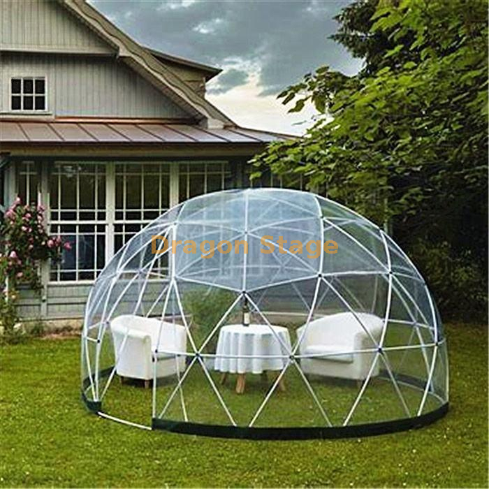 بالإضافة إلى جاذبيتها الجمالية، تتميز الخيمة ذات القبة الشفافة بمزايا عملية كبيرة. توفر مادة PVC المتينة حاجزًا مقاومًا للماء والرياح، مما يضمن الحماية من العناصر. يوفر شكل القبة المتأصل في تصميمها سلامة هيكلية ممتازة وقادرة على تحمل الرياح القوية والأمطار الغزيرة. هذه المتانة تجعلها مناسبة لمجموعة متنوعة من التطبيقات الخارجية، بدءًا من التجمعات الحميمة وحتى الأحداث واسعة النطاق.
