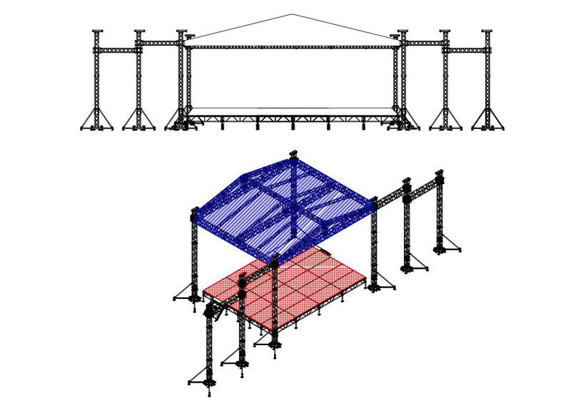 نظام تروس: 12x10x8m مع 4 أجنحة، كل أجنحة 3M، المرحلة: 8x10m